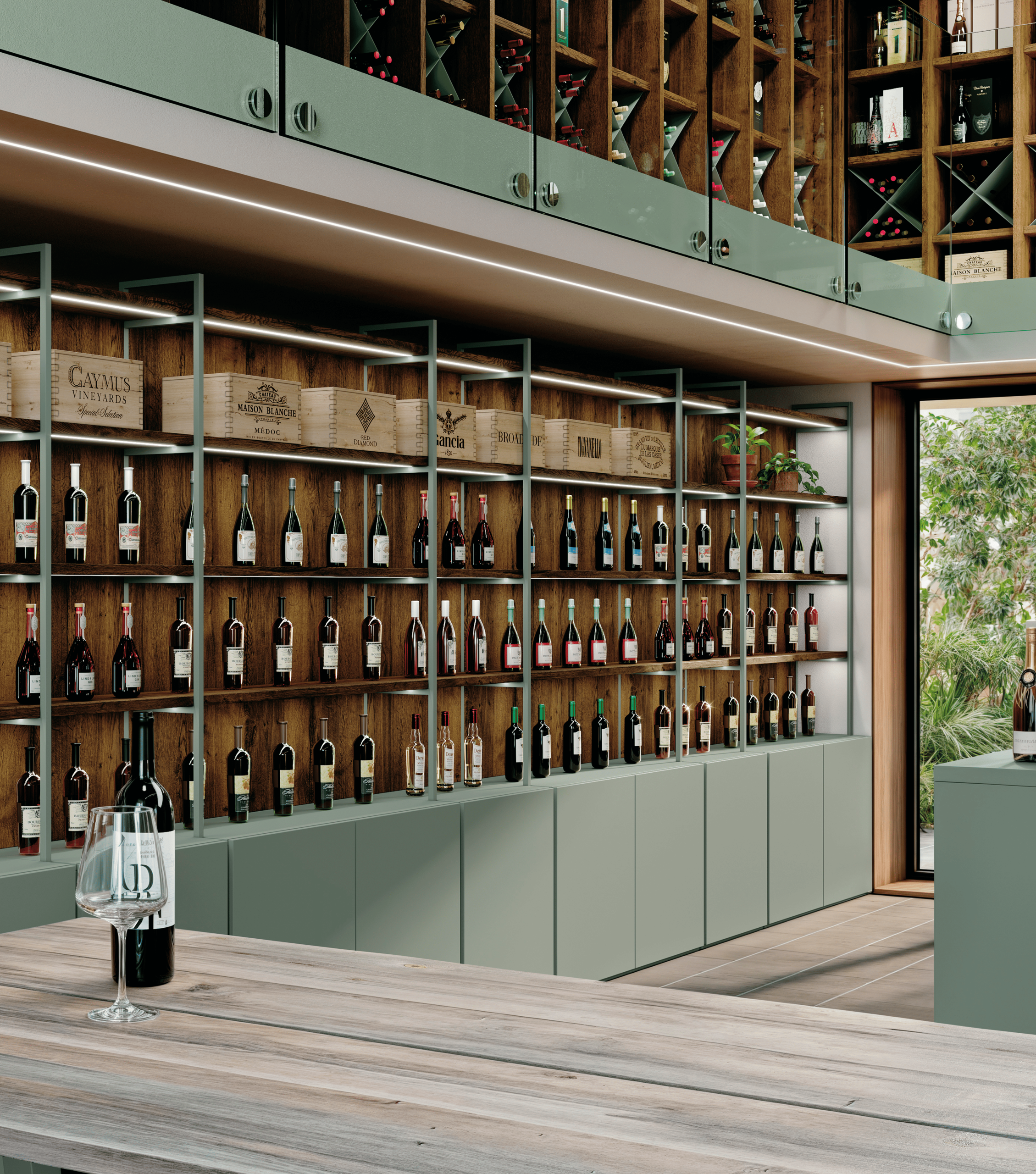 Para personalizar aún más los muebles, se ofrece una amplia variedad de tiradores, concretamente dieciséis modelos, entre los que destacan un uñero metálico disponible en todos los unicolores que ofrece la colección y un uñero de madera natural.