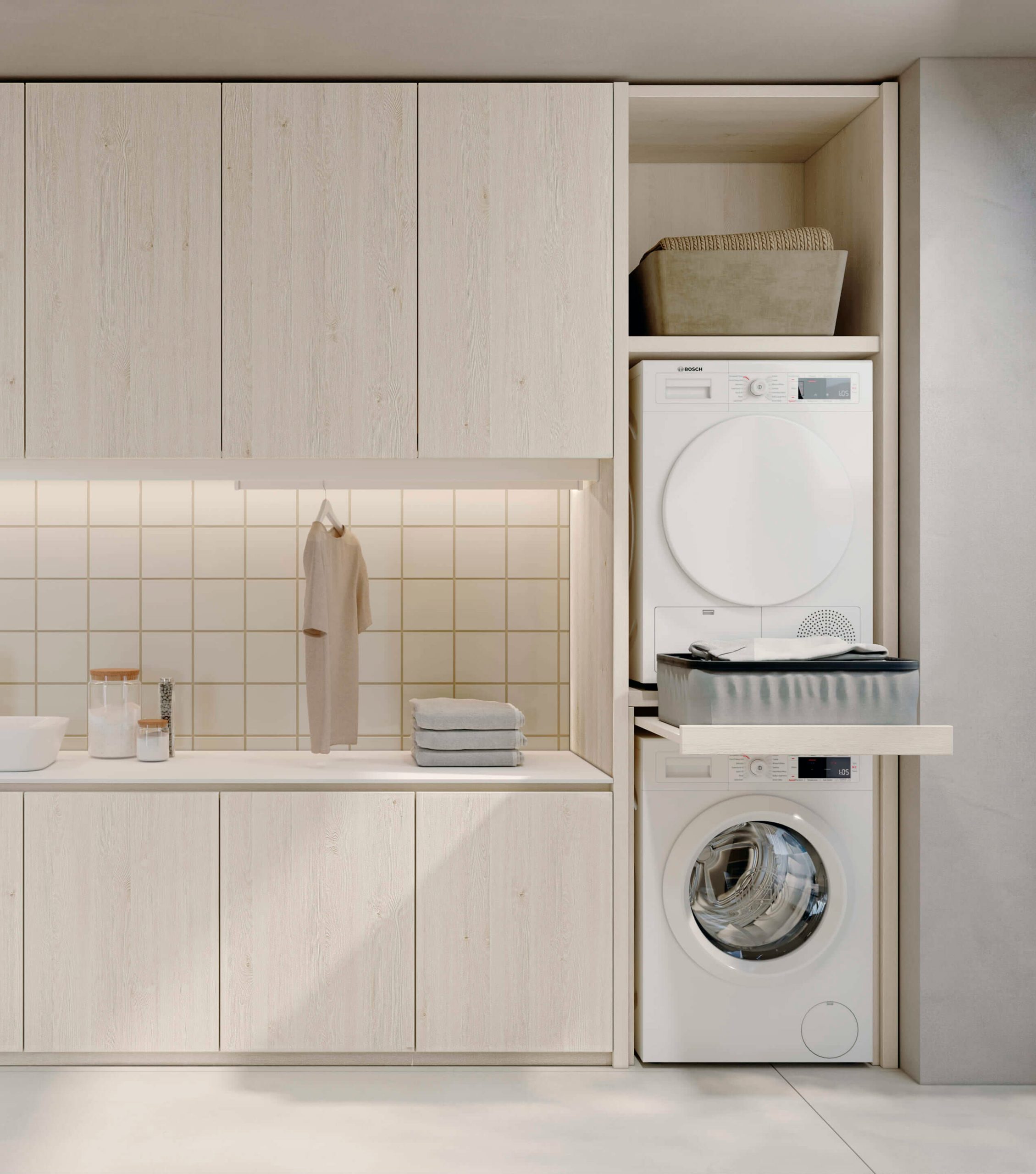 El acabado porcelánico Urban, aporta una personalidad neutra y atemporal a los muebles y combina perfectamente con la mayoría de los acabados melamínicos.
